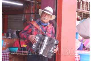 YECAPIXTLA, MORELOS, 12MARZO2024.- Vida cotidiana en el municipio de Yecapixtla, un hombre se gana unas monedas tocando el acordeón en el área de fondas del mercado, imagen tomada el pasado 12 de marzo. FOTO: MARGARITO PÉREZ RETANA/CUARTOSCURO.COM