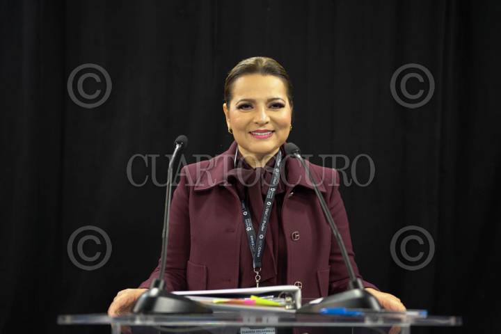 GUADALAJARA, JALISCO, 17MARZO2024.- Claudia Delgadillo, candidata a la gubernatura de Jalisco por la coalición Sigamos Haciendo Historia, durante el primer debate con sus contrincantes políticos. FOTO: CUARTOSCURO.COM
