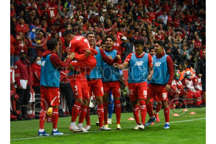TOLUCA, ESTADO DE MÉXICO, 17MARZO2024.- Jugadores de los Diablos de Toluca recibieron en la cancha del Nemesio Diez a la escuadra de PUMAS en la jornada 12 del Torneo Clausura 2024 de la Liga MX, logrando la victoria la escuadra escarlata con un marcador final 3-0. FOTO: CRISANTA ESPINOSA AGUILAR /CUARTOSCURO.COM