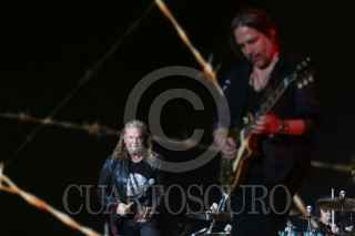 CIUDAD DE MÉXICO, 17 MARZO2024.- Fernando Olvera, voz y guitarrista acústico, y Sergio Vallin, guitarrista eléctrico, integrantes de la banda Mana, durante su participación en la 24 Edición del Festival Iberoamericano de Cultura Vive Latino 2024 realizado en el Autódromo Hermanos Rodríguez. FOTO: GRACIELA LÓPEZ /CUARTOSCURO.COM