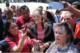 CIUDAD DE MÉXICO, 18MARZO2024.- Claudia Sheinbaum saluda a sus simpatizantes al salir del evento. FOTO: DANIEL AUGUSTO /CUARTOSCURO.COM