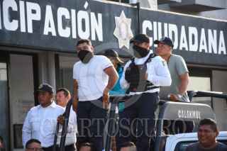 CAMPECHE, CAMPECHE 18MARZO2024.- En el tercer día de protesta de la Policía Estatal de Campeche, varios representantes de policías de los municipios se sumaron a la protesta en el estado, hoy fueron visitados por la comisión de derechos humanos, donde varias integrantes de mujeres valientes de la policía rompieron el silencio y denunciaron los malos tratos que han recibido, además del motín fallido de la semana pasada donde fueron usadas sin explicarles de que tipo de operativo se trataba. Los elementos exigen la renuncia de la secretaria de seguridad Marcela Muñoz y de los directores policiacos. FOTO: MICHAEL BALAM/CUARTOSCURO.COM