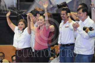 CIUDAD DE MÉXICO, 18MARZO2024. - Claudia Sheinbaum, candidata presidencial de Morena, durante un mitin en la capital del país. FOTO: DANIEL AUGUSTO /CUARTOSCURO.COM