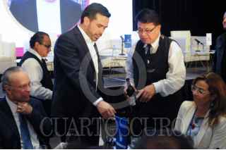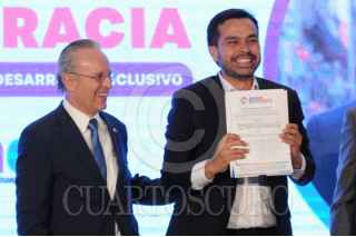 CIUDAD DE MÉXICO, 19MARZO2024. Jorge Álvarez Maynez, candidato de MC a la presidencia, firmó un acuerdo con los empresarios de la Coparmex, a su lado el dirigente del organismo, José Medina Mora. FOTO: DANIEL AUGUSTO /CUARTOSCURO.COM