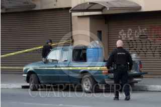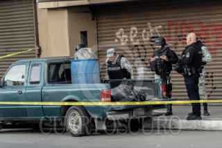 TIJUANA BAJA CALIFORNIA, 19MARZO2024.- El cuerpo de una persona fue encontrado al interior de un tambo de basura color azul sobre la avenida Madero, entre calle segunda y tercera de la Zona Centro. El tambo estaba ubicado en la parte trasera de una camioneta tipo Pick Up, Ford Ranger, con placas americanas, color verde, estacionada sobre la avenida. De acuerdo a información extraoficial, se presume que el vehículo fue abandonado en el lugar desde el viernes 15 de marzo, de la semana pasada, otro hecho se registró sobre la calle segunda, a la la altura del puente del Payaso en Zona Centro, una maleta con un cuerpo al interior fue localizado por autoridades. Este es el segundo hallazgo del día martes 19 de marzo, registrándose a tan sólo unas cuadras de donde ocurrió el hallazgo de otro cuerpo al interior de un tambo sobre la avenida Madero. De acuerdo a información extraoficial, se trata del cuerpo de una mujer el que se localizó al interior de una maleta. Elementos de la Guardia Nacional y Policías Municipales, se encuentran en el lugar, acordonando la zona. FOTO: OMAR MARTÍNEZ/CUARTOSCURO.COM