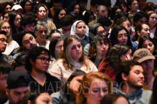 CIUDAD DE MÉXICO, 20MARZO2024.- Clara Brugada, candidata a la jefatura de Gobierno por la coalición Sigamos Haciendo Historia (Morena, PT, y PVEM), durante su participación en el "Encuentro por la democracia" con jóvenes estudiantes de la Universidad Iberoamericana campus Santa Fe, para compartir su proyecto de gobierno. FOTO: MARIO JASSO/CUARTOSCURO.COM