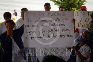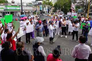 CIUDAD DE MÉXICO, 20MARZO2024.- Integrantes del Sindicato Nacional de Trabajadores de la Salud, se manifestaron en la Zona de Hospitales del Sur, para exigir a las autoridades insumos y uniformes para poder desempeñar sus labores. FOTOS: ROGELIO MORALES /CUARTOSCURO.COM