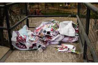 CIUDAD DE MÉXICO, 20MARZO2024.- En un puente de la avenida Constitutentes se encuentra propaganda electoral de la candidata Clara Brugada, de la coalición Sigamos Haciendo Historia, al parecer fue arrancada por simpatizantes de la alcaldía Miguel Hidalgo que es Panista. FOTO: VICTORIA VALTIERRA/CUARTOSCURO.COM