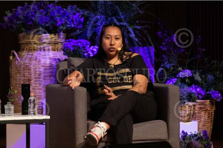 CIUDAD DE MÈXICO, 20MARZO2024.- La rapera Mare Advertencia durante el foro "La importancia del lenguaje en las canciones", del encuentro Voz a tu Voz 2024. FOTO: MOISÈS PABLO/CUARTOSCURO.COM