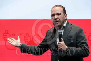 CIUDAD DE MÉXICO, 21MARZO2024.- Santiago Taboada, candidato a la jefatura de Gobierno por la alianza PAN-PRI-PRD, participó en el foro Encuentros por la democracia que la Universidad Iberoamericana (IBERO) realiza cómo parte de las elecciones federales y a nivel ciudad para concientizar y acerca a su comunidad a las y los candidatos. FOTO: GALO CAÑAS/CUARTOSCURO.COM