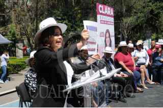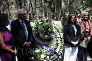 CIUDAD DE MÉXICO, 21MARZO2024.- Clara Brugada, candidata a la jefatura de gobierno de la coalición Sigamos Haciendo Historia, colocó una ofrenda floral en donde existía un busto de Benito Juárez en el Parque Hundido. FOTO: DANIEL AUGUSTO /CUARTOSCURO.COM