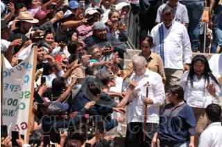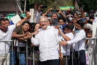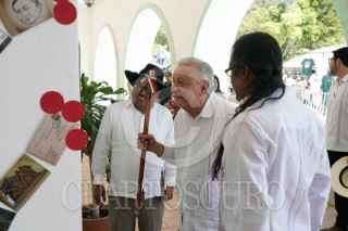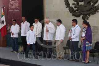 GUELATAO DE JUÁREZ, OAXACA, 21MARZO2024.- Andrés Manuel López Obrador, presidente Constitucional de los Estados Unidos Mexicanos, presidió el 218 Aniversario del Natalicio de Benito Juárez. Lo acompañan Adelfo Andrés Cayetano Bautista, presidente municipal de San Andrés Solaga, Oaxaca y presidente de la Asociación Regional de Comunidades Indígenas del Pueblo Xhidza y Xhon (Zapoteco) de la Sierra Juárez de Oaxaca; Aldo González Rojas, presidente municipal de Guelatao de Juárez, Oaxaca; Salomón Jara Cruz, gobernador Constitucional del Estado de Oaxaca; Adelfo Regino Montes, director general del Instituto Nacional de los Pueblos Indígenas. FOTO: PRESIDENCIA/CUARTOSCURO.COM