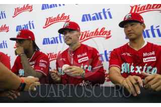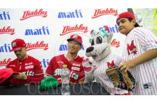 CIUDAD DE MÉXICO. 21MARZO2024.- Directivos y jugadores de los Diablos Rojos de México, firmaron autógrafos y convivieron con fans en la tienda Martí del Parque Delta. Ivan Terrazas, Ronnie Williams, Celedonio y Yura Kudo. FOTO: VICTORIA VALTIERRA/CUARTOSCURO.COM
