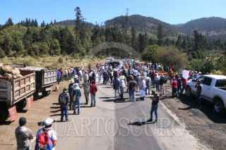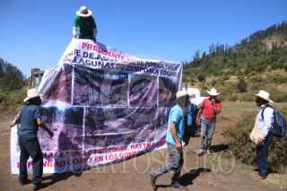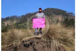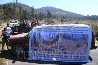 OCUILAN, ESTADO DE MÉXICO, 22MARZO2024.- Comuneros de varias localidades de este municipio conmemoraron el Dia Internacional del Agua con un bloqueo vehicular en la carretera federal Lagunas de Zempoala-Santa Martha. Los defensores del Bosque de Agua se reunieron en la comunidad de Santa Martha y desde ahí se trasladaron al paraje conocido como Agua Bendita, donde realizaron su protesta. Exigen que el gobierno federal y del estado implementen medidas para terminar con la tala ilegal. El sitio de la protesta es una hondonada seriamente dañada donde se pueden observar las crestas de los montes destruidos por tala montes. FOTO: MARGARITO PÉREZ RETANA/CUARTOSCURO.COM