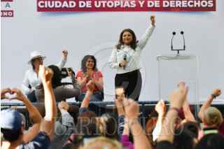 CIUDAD DE MÉXICO, 10MARZO2024.- Bernardo Bátiz, integrante del Consejo de la Judicatura Federal, junto a Clara Brugada, candidata a la Jefatura de Gobierno por la coalición Sigamos Haciendo Historia, quien encabezó su asamblea con vecinos de la colonia Moderna de la alcaldía Benito Juárez para compartir sus propuestas de gobierno. FOTO: MARIO JASSO/CUARTOSCURO.COM
