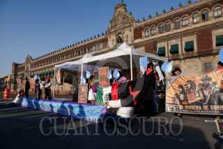 CIUDAD DE MÉXICO, 22MARZO2024.- Integrantes del Ejército Zapatista de Liberación Nacional (EZLN), integrantes de pueblos originarios de los diferentes estados y personas de la sociedad civil, así cómo organizaciones sociales se dieron cita en el Zócalo capitalino para protestar por el Día Mundial del Agua. Expresaron que lo que se vive no es sequía es saqueo y que el gobierno ha fallado y violentado a las comunidades que defienden sus recursos. FOTO: GALO CAÑAS/CUARTOSCURO.COM