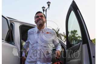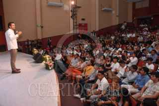 CAMPECHE, CAMPECHE, 22MARZO2024.- Jorge Álvarez Máynez, candidato a la presidencia por el partido Movimiento Ciudadano , sostuvo un encuentro de diálogo con universitarios de la asociación nacional de estudiantes de ciencia política y administración pública en el teatro Juan de la Cabada de la ciudad capital. FOTO: MICHAEL BALAM/CUARTOSCURO.COM