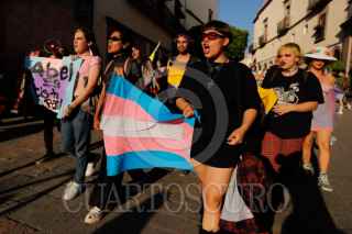 QUERÉTARO, QUERÉTARO, 23MARZO2024.- En las calles del centro historico se llevó a cabo la Marcha de la comunidad Transexual con el objetivo de visibilizar a este sector de la sociedad. Una de las consignas es que se apruebe la Ley de Género que se encuentra atorada en el congreso desde el año pasado y que se den garantías de seguridad y contra la discriminación en el estado de Querétaro. FOTO: CÉSAR GÓMEZ/CUARTOSCURO.COM