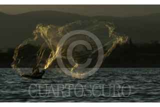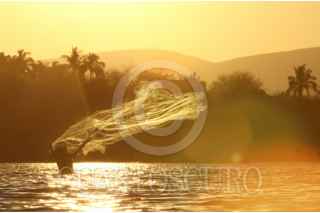 MIACATLÁN, MORELOS, 23MARZO2024.- Un hombre recorre el reducido embalse de la laguna El Rodeo pescando con su atarraya durante la tarde de ayer. MARGARITO PÉREZ RETANA/CUARTOSCURO.COM