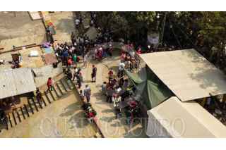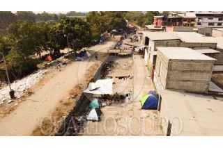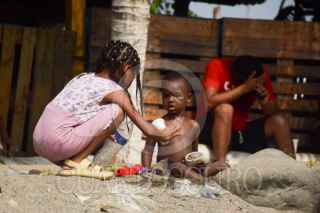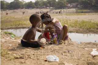 SUCHIATE, CHIAPAS, 24MARZO2024.- Familias enteras de migrantes de diferentes nacionalidades se encuentran en campamentos improvisados en los márgenes del Río Suchiate esperando que las autoridades del Instituto Nacional de Migración le otorgue un documento migratorio que les permita avanzar en el territorio de México sin exponerse a ser extorsionados por autoridades de los estados por donde tienen que pasar en su camino hacia Estados Unidos. Niños que juegan en esta zona tienen que soportar los 37 grados de temperatura que se registraron el día de hoy. FOTO: DAMIÁN SÁNCHEZ/CUARTOSCURO.COM