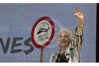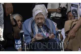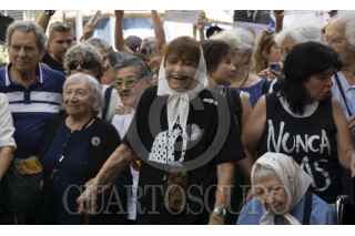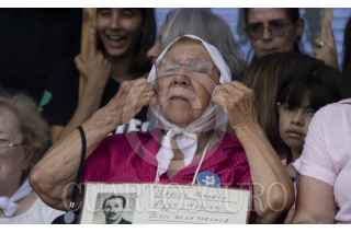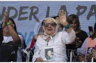 BUENOS AIRES, ARGENTINA, 24MARZO2024.- La organización "Madres y Abuelas de Plaza de Mayo" convocaron a una movilización en reclamo por la "Memoria, Verdad y Justicia". Miles de personas acudieron a la convocatoria que marchó por Avenida de Mayo hasta llegar a la Casa Rosada, donde la presidente de la organización "Abuelas de Plaza de Mayo", Estela de Carlotto, así como las referentes Taty Almeida y Nora Cortiñas, dieron un mensaje de repudio al discurso del presidente Javier Milei y su vicepresidenta, Victoria Villarruel. FOTO: NICOLÁS HERNÁNDEZ /CUARTOSCURO.COM