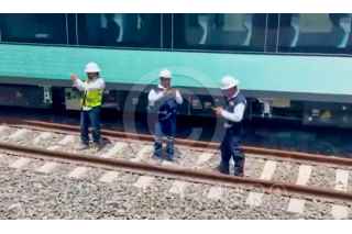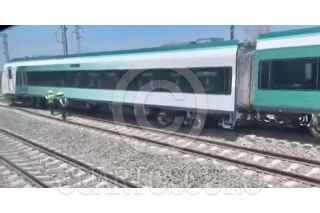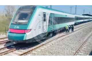 TIXKOKOB, YUCATÁN, 25MARZO2024.- La mañana de este lunes un vagón del Tren Maya se salió de las vías mientras hacia una maniobra en la estación de Tixkokob. La unidad iba sin pasajeros, no se reportaron lesionados, ni daños materiales considerables. FOTO: ESPECIAL/CUARTOSCURO.COM
