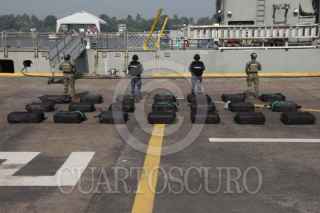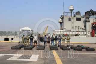 LÁZARO CÁRDENAS, MICHOACÁN, 25MARZO2024.- La Secretaría de Marina a través de la Armada de México, en funciones de Guardia Costera, informa que en días pasados, personal de la Décima Cuarta Zona Naval, con sede en Lázaro Cárdenas Michoacán, aseguró dos embarcaciones menores con motores fuera de borda, con 21 bultos, las cuales contenían aproximadamente una tonelada y media de una sustancia con características similares a la cocaína; asimismo, fueron detenidos siete presuntos infractores de la ley a aproximadamente 120 millas náuticas (222 kilómetros) al Suroeste de ese puerto. FOTO: SEMAR/CUARTOSCURO.COM