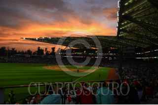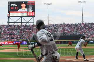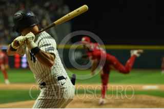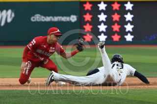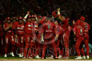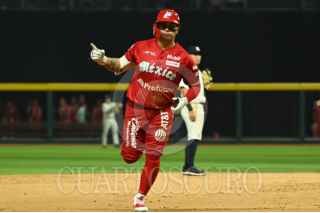 CIUDAD DE MÉXICO, 25MARZO2024.- Diosbel Arias, celebra con sus compañeros de los Diablos Rojos luego de conectar un home run con el que le dieron la vuelta al marcador contra los Yankees. FOTO: DANIEL AUGUSTO/ CUARTOSCURO.COM