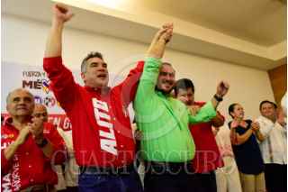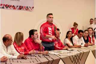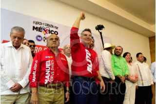 ACAPULCO, GUERRERO, 26MARZO2024.- El dirigente nacional del PRI Alejandro Moreno Cardenas sostuvo un encuentro con militantes de su partido en Acapulco, acompañado por las candidatas y candidatos a diputaciones locales y federales. FOTO: CARLOS CARBAJAL/CUARTOSCURO.COM