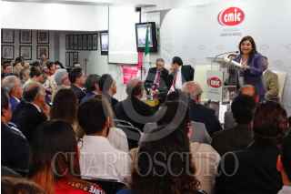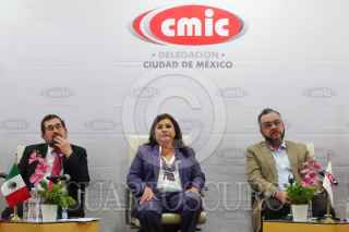 CIUDAD DE MÉXICO, 26MARZO2024.- Clara Brugada, candidata a la Jefatura de Gobierno por la coalición Sigamos Haciendo Historia, encabezó una reunión con autoridades de la Cámara Mexicana de la Industria de la Construcción, junto a Luis Méndez Jaled, director general de cmic, en donde habló de diversas propuestas para el sector de la construcción. FOTOS: ROGELIO MORALES /CUARTOSCURO.COM