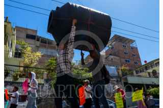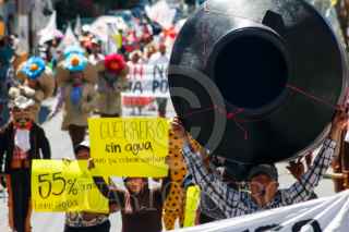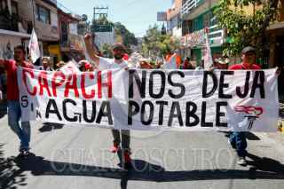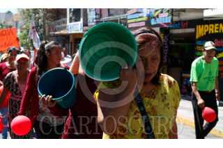 CHILPANCINGO, GUERRERO, 26MARZO2024.- Habitantes de varias colonias en la capital de Guerrero participaron en la “Marcha de las cubetas vacías”, convocada por el Movimiento Antorchista, para exigir a la paramunicipal Comisión de Agua Potable y Alcantarillado de Chilpancingo (Capach) el abastecimiento del vital líquido y cobros justos por ese servicio. Al menos un centenar de vecinos participaron en la movilización, así como habitantes del Centro de la ciudad. La protesta inició en la Plaza Unidos por Guerrero y culminó en el Ayuntamiento capitalino en espera de ser atendidos por autoridades municipales. Las y los manifestantes reconocieron que la escasez de agua potable es un gran reto para las autoridades municipales, estatales y federales, por lo que, la primer “Marcha de las cubetas vacías” enarbola tres demandas principales: Mejorar el suministro de agua potable; Subsidio de agua en pipas con un plan ordenado en el que paguen más los que pueden y los compañeros más humildes reciban acceso a este programa sin costo alguno y Alto a los cobros excesivos de la CAPACH". FOTO: DASSAEV TÉLLEZ ADAME/CUARTOSCURO.COM