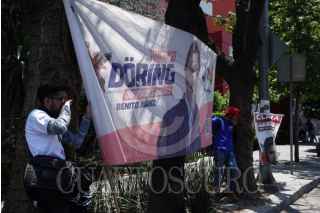 CIUDAD DE MÉXICO, 26MARZO2024.- Jóvenes sostienen una publicidad de Federico Döring como candidato a Diputado Federal, en calles de la alcaldía Benito Juárez. FOTO: GALO CAÑAS/CUARTOSCURO.COM