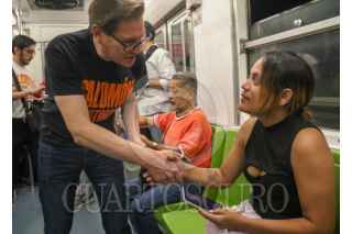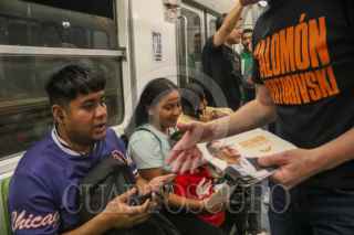 CIUDAD DE MÉXICO. 26MARZO2023.- El candidato del Movimiento Ciudadano, Salomón Chertorivski Woldenberg, a la jefatura de Gobierno realizó proselitismo en la línea 8 del Metro de Garibaldi a Santa Anita, posteriormente se dirigió al mercado de Hidalgo, dónde locatarios le pidieron apoyo para seguridad en el mercado público de la colonia Doctores. FOTO: VICTORIA VALTIERRA/CUARTOSCURO.COM