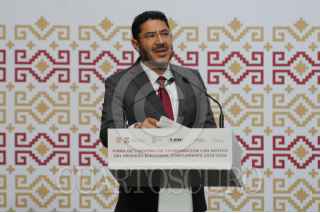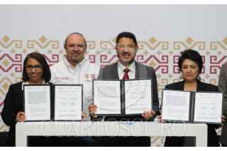 CIUDAD DE MÉXICO, 26MARZO2024.- La jefatura de gobierno, encabezada por Martí Batres, la consejera presidenta del IECM, Patricia Avendaño y la vocal ejecutiva local del INE, María Luisa Flores Huerta, firmaron un convenio de coordinación de cara a las elecciones del próximo junio. FOTO: DANIEL AUGUSTO /CUARTOSCURO.COM
