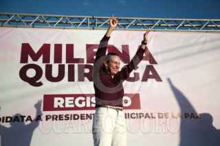 LA PAZ, BAJA CALIFORNIA SUR, 26MARZO2024.- La tarde de ayer, Milena Quiroga Romero, alcaldesa de La Paz, realizó su registro como candidata a la reelección por la Presidencia Municipal de La Paz por la alianza “Juntos hacemos historia” de Morena, PT, Verde Ecologista y Nueva Alianza. FOTO: GABRIEL LARIOS HEREDIA/CUARTOSCURO.COM