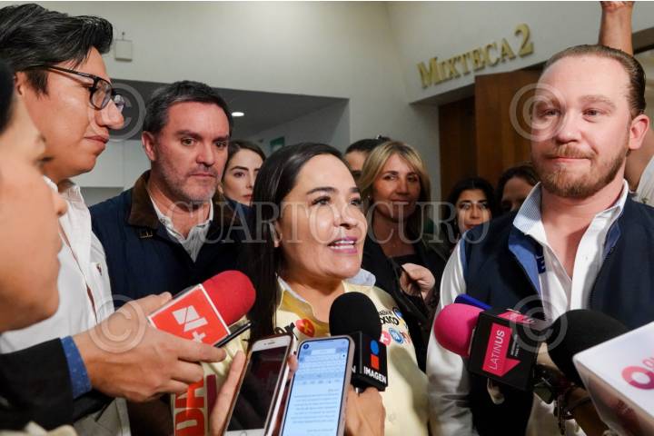 CIUDAD DE MÉXICO, 26MARZO2024.- Andrés Sánchez Miranda, representante de la campaña ante el IECM; Federico Döring, candidato a Diputado Federal; Verónica Juárez, candidata al senado, y Santiago Taboada, candidato a la jefatura de Gobierno por la alianza PAN-PRI-PRD, encabezó una reunión con Organizaciones No Gubernamentales y de la sociedad civil para escuchar y plantear su programa r apoyo y trabajo para este rubro en caso de ganar la contienda. Previo al encuentro, Taboada Cortina declaro a medios que el actual jefe de Gobierno Martí Batres ya fue notificado por el Instituto Electoral de la Ciudad de México (IECM) que no podra hacer alusión al candidato y que de no detenerse demostrará que Clara Brugada tiene pérdida la elección. FOTO: GALO CAÑAS/CUARTOSCURO.COM