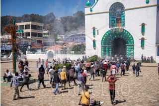SAN JUAN CHAMULA, CHIAPAS, 26MARZO2024.- Dan inicio los preparativos para la Semana Santa en la comunidad de Chamulas, cientos de autoridades tradicionales se reúnen para traer el Muk’ta’te (árbol grande). Seleccionan el mejor ciprés para colocarlo a un lado de la Cruz dentro de la iglesia de la comunidad. Antes de talar el árbol se realiza un ritual para honrar a la naturaleza, pedirle permiso y perdón por la tala. FOTO: ISABEL MATEOS /CUARTOSCURO.COM