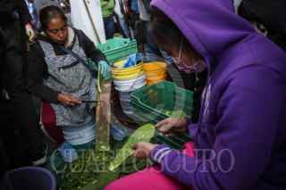 CIUDAD DE MÉXICO, 27MARZO2024.- Desde temprana hora y en su mayoría mujeres el Centro de Acopio de Nopal se encuentra lleno de “diablitos” cargadores que llevan los nopales de cientos de personas que acuden a comprar esta materia prima tan característica de Milpa Alta. FOTO: ANDREA MURCIA /CUARTOSCURO.COM