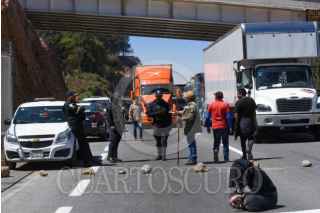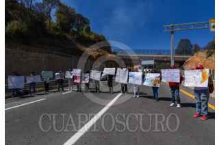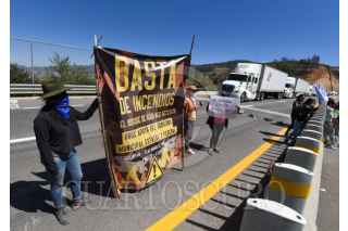 LERMA, ESTADO DE MÉXICO, 27MARZO2024.- Pobladores de Xochicuahutla, Huitzizilapan y Tlamimilolpan, del municipio de Lerma, bloquearon la carretera Toluca-Naucalpan en ambos sentidos exigiendo apoyo de los tres niveles de gobierno para combatir los incendios que se encuentran activos el la montaña de Lerma, hasta el momento las brigadas conformadas por los vecinos han combatido los incendios forestales pero no se dan abasto, han detectado que estos son provocados pero las autoridades no les brindan apoyo. FOTO: CRISANTA ESPINOSA AGUILAR /CUARTOSCURO.COM