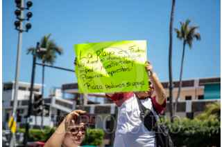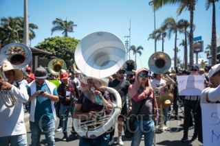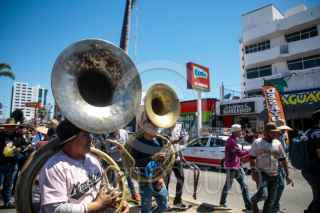 MAZATLÁN, SINALOA, 27MARZO2024.- Músicos de Banda Sinaloense se manifestaron para exigir que no limiten su trabajo en las playas mazatlecas. Fueron alrededor de 20 bandas que se congregaron en “Valentinos” para marchar por la Av. Camarón Sábalo hasta el hotel Pueblo Bonito en respuesta a las recientes declaraciones de hoteleros y empresarios que pretenden limitar los horarios de trabajo. Algunos huéspedes se pusieron a escuchar y disfrutar a manera de solidaridad de la tradicional música sinaloense. FOTO: DANIA ROBLES /CUARTOSCURO.COM