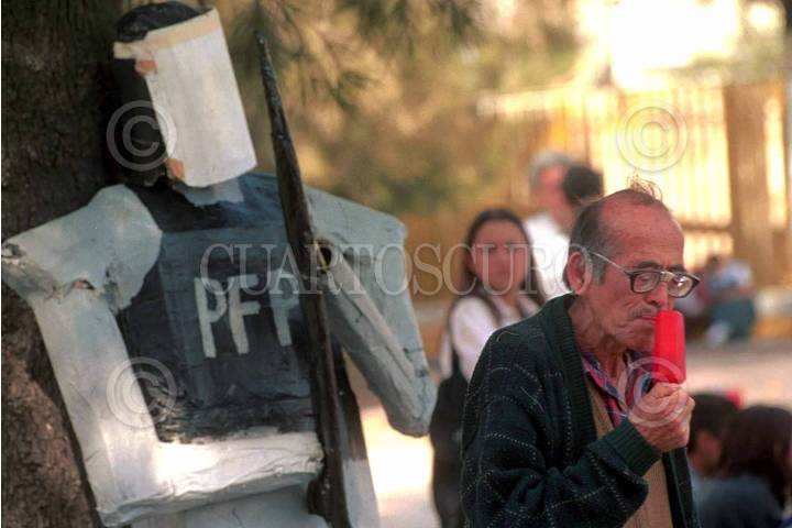 Alejandro Echavarria alias "El Mosh" estuvo presente esta tarde durante la toma de la preparatoria numero 3, por la conmemoracion de un año de su ocupacion por parte de la PFP. FOTO: Pedro Mera/CUARTOSCURO.COM