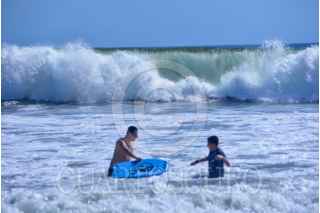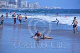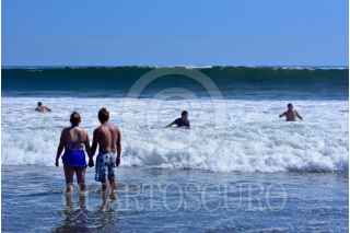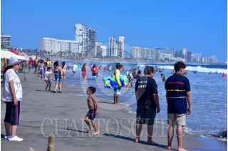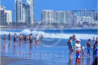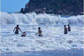 ACAPULCO, GUERRERO, 28MARZO2024.- Cientos de turistas llenaron la Playa Revolcadero en la Zona Diamante de Acapulco, en donde a pesar del fuerte oleaje algunos bañistas entraron al mar, autoridades informaron que hay hasta el momento un 69.6 ? ocupación hotelera en este Jueves Santo. FOTO: CARLOS ALBERTO CARBAJAL/CUARTOSCURO.COM