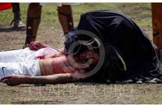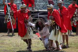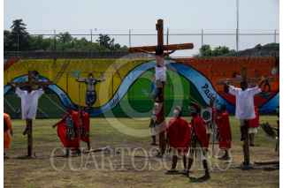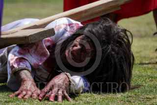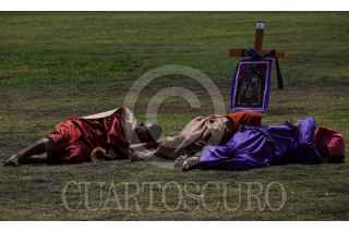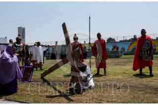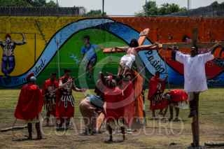 CIUDAD DE MÉXICO, 29MARZO2024.- Internos de la sección de máxima seguridad del Reclusorio Varonil Norte (RENO) en la alcaldía Gustavo A. Madero llevaron a cabo la representación del Viacrucis de Jesús con motivo de la celebración del Viernes Santo.