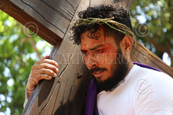 MÉRIDA, YUCATÁN, 29MARZO2024.- Cerca de 60 internos del Centro de Reinserción Social (Cereso) de Mérida realizaron, esta mañana, la representación del tradicional viacrucis de la pasión de Cristo. William A.G. fue el encargado de reencarnar al Nazareno quien prometió terminar su carrera al salir de prisión, actualmente se encuentra cumpliendo una condena a causa de las drogas. Reclusas y reclusos, acompañados de familiares y amigos, además de un grupo de religiosos recorrieron las instalaciones hasta culminar en el patio en donde fue crucificado Jesucristo por los soldados romanos. FOTO: MARTÍN ZETINA/CUARTOSCURO.COM