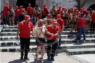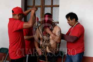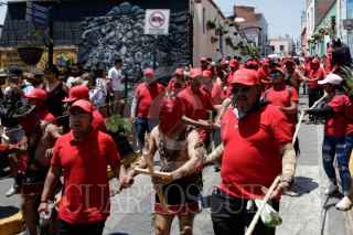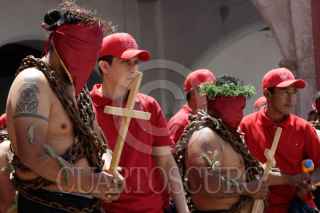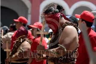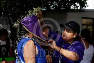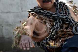 ATLIXCO, PUEBLA, 29MARZO2024.- Los engrillados de Atlixco realizaron la tradicional procesión del viernes santo. La cual data de hace 100 años en que simulan el viacrucis que Jesús recorrió antes de ser crucificado, a modo de penitencia, cargando cadenas y con espinas en el cuerpo. FOTO: MIREYA NOVO/ CUARTOSCURO.COM