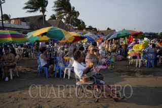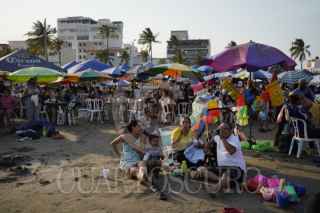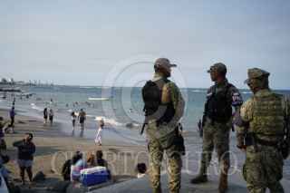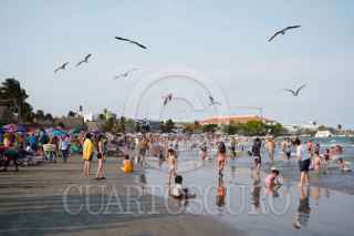 VERACRUZ, VERACRUZ, 29MARZO2024.- Cientos de turistas disfrutan de las playas de la costa veracruzana jugando en la arena y bañándose en el mar durante este viernes santo. Mientras que elementos de la Policía Naval custodian la zona. FOTO: VICTORIA RAZO/CUARTOSCURO.COM
