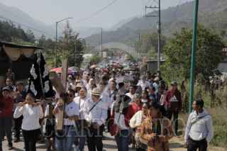 CHENALHÓ, CHIAPAS, 29MARZO2024.- El pueblo creyente de la parroquia de Chenalhó peregrino este Viernes Santo para denunciar la violencia que están viviendo ahora en las comunidades. En un comunicado expresaron que “Actualmente parece que el condenado a muerte es el pueblo, que sufre el terror de la violencia, del miedo que se ha apoderado de la mayoría de las comunidades, miedo de salir a trabajar y ser confundidos, miedo a los disparos, a los enfrentamientos entre grupos armados, a las bombas, a los carros quemados y miedo a las extorsiones. Vemos aparecer y patrullar a personas desconocidas en nuestras comunidades, también hemos visto, bloqueos, retenes, heridos, desplazados y muertos”. FOTO: EDUARDO GUTIÉRREZ PÉREZ/LAS ABEJAS/CUARTOSCURO.COM
