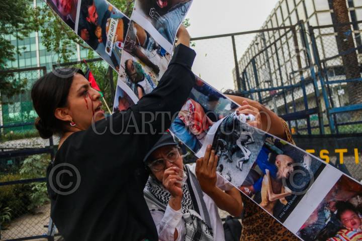 CIUDAD DE MÉXICO. 29MARZO2024.- Viacrucis por la liberación del Pueblo Palestino, la libertad y ayuda a la población de ese país. Frente a la embajada de los Estados Unidos se manifestaron está tarde. FOTO: VICTORIA VALTIERRA/CUARTOSCURO.COM