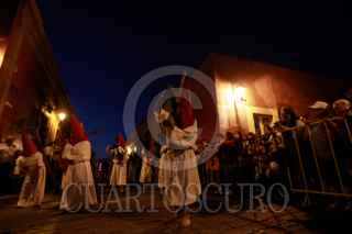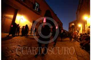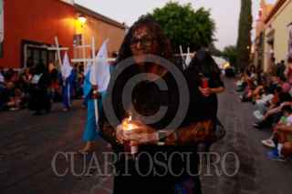 QUERÉTARO, QUERÉTARO, 29MARZO2024.- Desde hace más de cincuenta años, en Santiago de Querétaro se lleva a cabo la Procesión del Silencio que tiene lugar el Viernes Santo por la tarde. En las principales calles del Centro Histórico, diferentes grupos de Hermandades y Cofradías realizan un recorrido manifestando su gran dolor por la muerte de Jesucristo. FOTO: CÉSAR GÓMEZ/CUARTOSCURO.COM