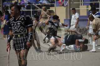 SANTA CRUZ AQUIAHUAC, TLAXCALA, 29MARZO2024.- Con la representación de escenas o pasajes bíblicos de mucho realismo y en ocasiones con rudeza, en la que participan los mismos vecinos de esta comunidad, se lleva a cabo la celebración del llamado Viernes Santo en esta población ubicada al sur del estado de Tlaxcala. En este 2024, se cumplieron 50 años de que se realiza este montaje escénico en el que participan niños, jóvenes y personas de la tercera edad otorgándole a esta actividad una relevancia dentro de otras poblaciones de la región sur del estado. FOTO: J. GUADALUPE PÉREZ/CUAROSCURO.COM